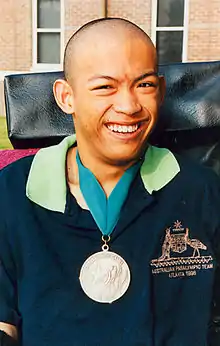![]() Tu Huyhn with the bronze medal he won at the Atlanta Paralympics | ||||||||||||