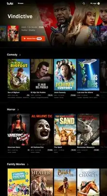 Tubi is an American over-the-top content platform and ad-supported streaming service owned by Fox Corporation since 2020.[1][2] The service was launched on April 1, 2014, and is based in Los Angeles, California.[3][4] In January 2021, Tubi reached 33 million monthly active users.[5] In January 2023, Tubi has 64 million monthly active users.[6] As of September 2023, Tubi reached 74 million monthly active users.[7]