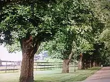 A key landscape element is a driveway, which is lined with an avenue of 51 Elms down each side. They are mature from the gates through to the 28th tree, and semi-mature after that indicating two stages of planting. The size of the more mature specimens suggests an original planting date of around 1900. About 10 of the trees are recent in-fill sapling plantings. Other related landscape elements are several cypresses (Cupressus Macrocarpa) which appear to have been planted in the early twentieth century as a wind-break, and there are more mature Cypress windbreaks in the surrounding paddocks. These vary in maturity and appear to date from the early to mid-twentieth century.