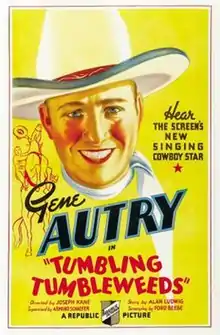 Tumbling Tumbleweeds is a 1935 American Western film directed by Joseph Kane and starring Gene Autry, Smiley Burnette, and Lucile Browne.[1] Written by Ford Beebe, the film is about a cowboy who returns home after a five-year absence to find his father murdered and his boyhood pal accused of the dastardly deed. Tumbling Tumbleweeds features the songs "Riding Down the Canyon", "That Silver-Haired Daddy of Mine", and the Bob Nolan classic "Tumbling Tumbleweeds".[1]