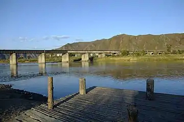The Namyanggukkyŏng Line, or Namyang Border Line, is a 0.8 km (0.50 mi) long railway line of the Korean State Railway connecting Namyang on the Hambuk Line with Kukkyŏng at the DPRK–China border, continuing on to Tumen, China, 3.3 km (2.1 mi) from Namyang.[1] At Tumen it connects with China Railway's Changtu Railway (Changchun–Tumen; 长图铁路), Tujia Railway (Tumen–Jiamusi; 图佳铁路), and Tuhun Railway (Tumen–South Hunchun–Changlingzi and on to Russia; 图珲铁路). The line is electrified between Namyang and Kukkyong.