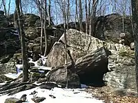 The Tunxis Trail is primarily used for hiking, backpacking, picnicking, and in the winter, snowshoeing. Portions of the trail are suitable for, and are used for, mountain biking and cross-country skiing. Site-specific activities enjoyed along the route include hunting, fishing, horseback riding, boating, bouldering, rock climbing (access), and swimming.[1][2]