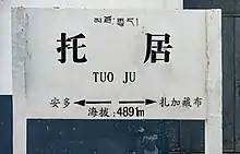 Tuoju railway station is a station on the Chinese Qingzang Railway.
