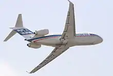 The Tupolev Tu-334 (Russian: Туполев Ту-334) was a Russian short-to-medium range airliner project that was developed to replace the ageing Tu-134s and Yak-42s in service around the world. The airframe was based on a shortened Tu-204 fuselage and a scaled-down version of that aircraft's wing. Unlike the Tu-204, however, the Tu-334 has a T-tail and engines mounted on the sides of the rear fuselage instead of under the wings. With the nationalisation of the Russian aircraft companies in 2009 to form United Aircraft Corporation it was decided not to continue with the programme.[1]
