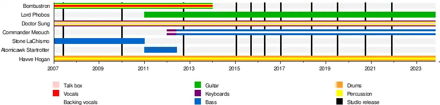 - Commander Meouch – bass, backing vocals (2011, 2012–present), keyboards, talk box (2012)