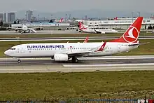 On 12 March 2019, following the request of the Directorate General of Civil Aviation, Turkish Airlines grounded all of its 12 Boeing 737 MAX aircraft. Some aircraft that departed a few hours before the decision had to return to Istanbul Atatürk Airport.[88] Turkish Airlines also did not take delivery of a further 12 737 MAX aircraft due to the global grounding, causing the planes to be stored at the Boeing Field.[89] The final Airbus A340-300 left the fleet in April 2019.[90] On 26 June 2019, the airline received its first Boeing 787-9 registered TC-LLA. The aircraft was welcomed at Istanbul Airport with a ceremony attended by Turkish media.[91] The first commercial flight with the type was flown on 8 July to Trabzon Airport.[92] In August 2019, Turkish Airlines chairman İlker Aycı stated that the carrier was looking into receiving its orders of long-haul aircraft, such as the Airbus A350-900, earlier than planned. In addition, he said that the airline was interested in the Airbus A220 and Embraer E190/E195 in order to serve new destinations.[93] On 31 December 2019, it was reported that Turkish Airlines received a compensation of around $225 million from Boeing due to the 737 MAX groundings.[94]