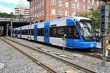 Thirty-seven Bombardier Flexity Swift low-floor trams run on the line (locally called A32). Six of them (432-437) are second hand and imported in 2010 from the RijnGouweLijn-project in the Netherlands. Fifteen new trams were ordered from CAF (locally called A35) and they started operation in October 2013 on the Solna extension.