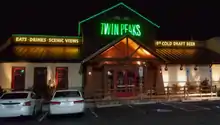 Twin Peaks is an American chain of sports bars and restaurants based in Lewisville, Texas,[2] which has been described as an "ultimate sports lodge"[3] and breastaurant along with similar chains.[4] The chain is known for having its waitresses, primarily young women and typically referred to as "Twin Peaks Girls", dress in revealing uniforms that consist of cleavage- and midriff-revealing red plaid tops, as well as khaki shorts or denim short shorts.[5] At other times, waitresses wear revealing seasonal or themed outfits.[6] Restaurants are decorated in the theme of a wilderness lodge and serve a mix of American, Southwest and Southern cuisines as well as alcohol. The chain's slogan is "Eats. Drinks. Scenic Views."[8]