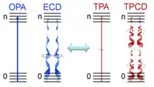 Two-photon circular dichroism (TPCD), the nonlinear counterpart of electronic circular dichroism (ECD), is defined as the differences between the two-photon absorption (TPA) cross-sections obtained using left circular polarized light and right circular polarized light (see Figure 1).[1]