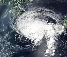 ![]() Typhoon Francisco shortly before landfall in Kyushu on August 5 | |