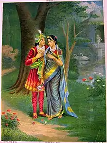 One day, Usha saw a young man in her dream, made love to him, and fell in love with him. [2] Chitralekha, a friend of Usha a talented artist, helped Usha to identify the young man seen in her dream by sketching various portraits of the Vrishnis. Usha realised that she had dreamt of Aniruddha, the grandson of Krishna. Chitralekha, through her yogic powers, shrunk Aniruddha to the size of a doll, abducted him from the palace of Krishna and brought him to Shonitapura.[3][4][5][6][7]