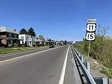 U.S. Route 11 (US 11) roughly parallels Interstate 81 (I-81) in the U.S. state of Pennsylvania. The route runs from the Maryland state line in Antrim Township, Franklin County, northeast to the New York state line in Great Bend Township, Susquehanna County. US 11 serves Harrisburg, Wilkes-Barre, and Scranton. Between Harrisburg and Scranton, US 11 follows the Susquehanna River, while I-81 follows a shorter route over the mountains further to the east.