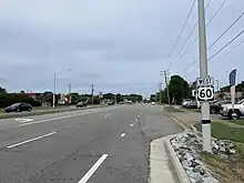 When it enters Hampton, 25th Street becomes Kecoughtan Road and Route 60 follows it to downtown. It runs through the Wythe and Southhampton neighborhoods, forming the northern boundary of the Olde Wythe Historic District. In the 1940s and 50s Kecoughtan Road was one of Hampton and Newport News's primary commercial centers.[3]