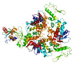 Ubiquitin-conjugating enzyme E2 L3 (UBE2L3), also called UBCH7, is a protein that in humans is encoded by the UBE2L3 gene.[5][6][7] As an E2 enzyme, UBE2L3 participates in ubiquitination to target proteins for degradation.[7] The role of UBE2L3 in the ubiquitination of the NF-κB precursor implicated it in various major autoimmune diseases, including rheumatoid arthritis (RA), celiac disease, Crohn's disease (CD), and systemic lupus erythematosus.[8]