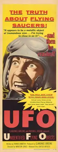 UFO (full title: Unidentified Flying Objects: The True Story of Flying Saucers)[2] is a 1956 American semi-documentary about the development of the UFO phenomenon in the United States. Clips from the documentary have often been used in other UFO documentaries and television episodes related to UFOs.[2]