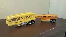 There were two types of truck cabs modeled: One a Peterbilt conventional, the other a Kenworth C.O.E. (cab over engine). Both types had four wheels and were made to pull Semi-trailers in box, tank, flatbed, auto transporter and hopper varieties, using their exposed metal rear chassis weight which was also the Fifth-wheel coupling.