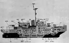 | Aviation facilities | Flight deck with retractable hangar, and overhead crane for aircraft engine service |