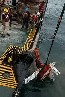 In November 2009, Harry Claiborne searched for a T-34C training aircraft on a flight from Naval Air Station Corpus Christi which crashed in the Gulf of Mexico.[19] The ship recovered the larger parts of the aircraft after its location was discovered by a Navy diving team.[20]