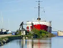 USCGC Mackinaw (WAGB-83) is a 290-foot (88 m) former Coast Guard icebreaker on exhibit as a museum ship at the Icebreaker Mackinaw Maritime Museum in Mackinaw City, Michigan. The vessel has been known as the "Queen of the Great Lakes"; the site states that "she was built during World War II to meet the heavy demands of war materials and transportation during the winter months".[6]