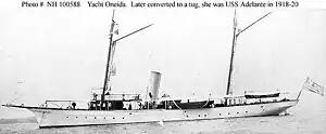 ![]() Yacht Oneida, later Adelante; photographed prior to World War I. | |