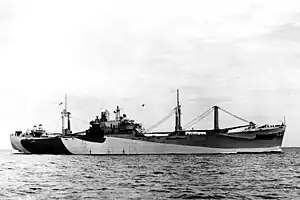 USS Akutan (AE-13) was a Lassen-class ammunition ship commissioned in the United States Navy. She was laid down on 20 June 1944 at Tampa, Fla., by the Tampa Shipbuilding Co.; launched on 17 September 1944; sponsored by Mrs. Rosswell B. Daggett, the wife of Capt. Daggett, USN, the supervisor of shipbuilding at Tampa; and commissioned on 15 February 1945. She was named after Akutan Island, an active volcano in the Aleutian Islands of Alaska.