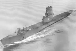 USS Bergall (SS-320), a Balao-class submarine in commission from 1944 to 1958, was the first ship of the United States Navy to be named for the bergall, a small fish of the New England coast. During World War II she made five war patrols between 8 September 1944 and 17 June 1945, operating in the South China Sea, Java Sea, and Lombok Strait and north of the Malay Barrier. During these patrols she sank two Japanese merchant ships totaling 14,710 gross register tons and one 740-displacement ton Imperial Japanese Navy frigate. She also damaged the Japanese heavy cruiser Myōkō, which was never repaired.