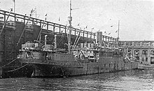 Black Arrow was converted by the Morse Dry Dock and Repair Company of Brooklyn between 17 January and 15 March 1919, at a cost of $170,938[lower-alpha 5]—in the process becoming the first ship raised by the Morse Company's new floating dock, the largest of its type in the world.[41] While still undergoing conversion, the ship was commissioned into the U.S. Navy on 27 January as USS Black Arrow (ID-1534).[5] After conversion, the ship had a passenger capacity of 85 officers and 1,510 enlisted men,[40] and a crew complement of 21 officers and 96 enlisted men,[42]