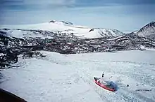 USS Glacier (AGB-4) (later USCGC Glacier (WAG/WAGB-4)) was a U.S. Navy, then U.S. Coast Guard icebreaker which served in the first through fifteenth Operation Deep Freeze expeditions. Glacier was the first icebreaker to make her way through the frozen Bellingshausen Sea, and most of the topography in the area is named for her crew members. When built, Glacier had the largest capacity single armature DC motors ever installed on a ship.[1] Glacier was capable of breaking ice up to 20 feet (6.1 m) thick, and of continuous breaking of 4-foot (1.2 m) thick ice at 3 knots (5.6 km/h; 3.5 mph).