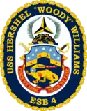USS Hershel "Woody" Williams (ESB-4) (formerly USNS Hershel "Woody" Williams (T-ESB-4)) is a Lewis B. Puller-class expeditionary mobile base (ESB), currently in service with the United States Navy. The ship is also a sub-variant of the Montford Point-class expeditionary transfer dock (ESD).[10] The ESDs are operated by the Navy's Military Sealift Command with predominantly civilian crews, while the ESBs, owing to the nature of their operations, have been commissioned and commanded directly by the U.S. Navy. The ship was named in honor of Hershel W. "Woody" Williams in an announcement by then-Secretary of the Navy Ray Mabus, on 14 January 2016. Williams was a Marine who was awarded the Medal of Honor in the Battle of Iwo Jima, during World War II.[11]