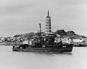USS John Blish was a Patrol Craft Sweeper (PCS) of the PCS-1376-Class, five of which were converted to small hydrographic survey vessels designated AGS and later coastal survey vessels, AGSc, that conducted hydrographic surveys for the United States Navy during and immediately after the Second World War.[note 1] The small PCS type vessels assigned to the United States Navy Hydrographic Office missions conducted pre invasion surveys, sometimes under fire, with the survey crews erecting signals for survey and later navigation, laying buoys and placing lights.