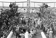 From 15–19 February 1944, Montpelier covered the amphibious landing on the Green Islands in the Bismarck Archipelago. In March, she hunted shipping south of Truk and participated in the invasion of the Emiraus. On 20 May 1944, Montpelier received light damage from return fire when she and two other light cruisers, along with eight destroyers, bombarded shore installations on Shortland, Poporang, and Magusaiai islands in the Shortlands.[2] On 1 October 1944, the US Navy's Special Air Task Force (SATFOR),[3] and began shelling Saipan on 14 June to support the Mariana Islands invasion. She joined TF 58 and participated in the decisive Battle of the Philippine Sea from 19–21 June. During the engagement, Japanese carrier air groups were virtually annihilated. Montpelier returned to the Marianas, and continued her shelling of Saipan, Tinian, and Guam. She left the Marianas on 2 August for overhauling in the United States.[1]