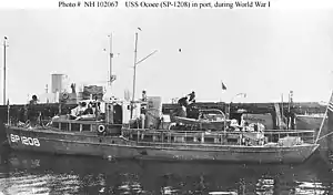 ![]() USS Ocoee (SP-1208) in port during World War I. | |