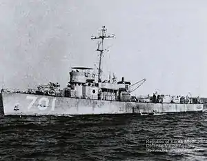 ![]() ROKS Baekdusan with South Korean flag painted on the side of the ship's superstructure in the 1950s