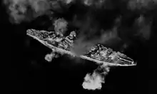 In the early hours of 25 October, the Southern Force came into contact with Oldendorf's battleships, which had positioned themselves to cross Nishimura's T. At 03:53, West Virginia opened fire, followed by some of the other battleships,[11] though Pennsylvania had trouble locating a target in the darkness with her search radar. Her older Mark 3 radar was not as effective as the more modern sets on West Virginia and some of the other battleships.[15] Task Group 77.2's battleships effectively annihilated Battleship Division 2; Shima's Second Striking Force had fallen behind and had not yet entered the fray. Yamashiro was set on fire and then exploded; she turned to flee, covered by a salvo of torpedoes from the burning Mogami, but the American battleships were able to evade them without damage. Despite having disengaged from Oldendorf's battleships, Yamashiro was hit by more torpedoes and capsized and sank around 04:20.[16] Shima's ships passed the still-floating Fusō and realized that Nishimura had entered a trap, so he reversed course to flee; in the confusion, his flagship Nachi collided with Mogami, damaging her and slowing her to be attacked by American light forces. She was later sunk, as were three of the four destroyers. Later on 25 October, Pennsylvania's anti-aircraft gunners helped to shoot down four aircraft that attacked a nearby destroyer.[11][17]