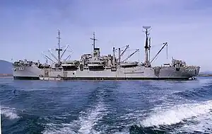 ![]() USS Renville (APA-227) at anchor off the coast of South Vietnam, 1966 | |