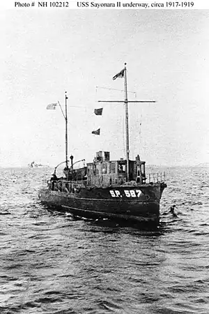 ![]() USS Sayonara II (SP-587) underway sometime between 1917 and 1919. | |