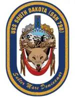 USS South Dakota (SSN-790), is a nuclear powered Virginia-class submarine in service with the United States Navy. The contract to build her was awarded to Huntington Ingalls Industries in partnership with the Electric Boat division of General Dynamics in Newport News, Virginia on 22 December 2008. This boat is the seventh of the Block III submarines which will feature a revised bow, including some technology from Ohio-class SSGNs.[12] The keel laying ceremony took place on 4 April 2016. The boat's sponsor is Deanie Dempsey, wife of General Martin Dempsey.[1] Her christening ceremony took place on 14 October 2017 in Groton, Connecticut.