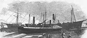 ![]() Valley City (foreground) undergoing conversion into a gunboat at New York, 1861 | |