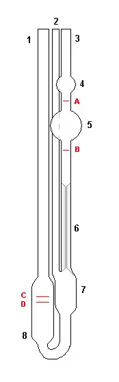 An Ubbelohde type viscometer or suspended-level viscometer is a measuring instrument which uses a capillary based method of measuring viscosity.[2] [3] It is recommended for higher viscosity cellulosic polymer solutions. The advantage of this instrument is that the values obtained are independent of the total volume. The device was developed by the German chemist Leo Ubbelohde (1877-1964).