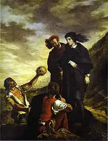 Alas, poor Yorick! I knew him, Horatio, a fellow of infinite jest, of most excellent fancy. He hath bore me on his back a thousand times, and now how abhorr'd in my imagination it is! my gorge rises at it. Here hung those lips that I have kiss'd I know not how oft. Where be your gibes now, your gambols, your songs, your flashes of merriment, that were wont to set the table on a roar? Not one now to mock your own grinning – quite chap-fall'n. Now get you to my lady's chamber, and tell her, let her paint an inch thick, to this favor she must come; make her laugh at that.[16]