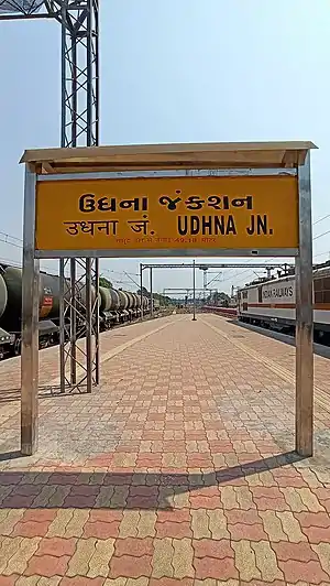 Udhna Junction railway station is a railway station serving Udhna town, in Surat City, Gujarat State of India. It is under Mumbai WR railway division of Western Railway zone of Indian Railways. It is located on New Delhi–Mumbai main line of the Indian Railways.