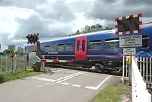 Ufton Nervet level crossing was an automatic half-barrier level crossing (AHBC) situated on the Reading–Taunton branch of the Great Western Main Line between Theale and Aldermaston stations.[1]: 7 [2]: 33 In the United Kingdom, AHBCs are used on roads where traffic is unlikely to block the crossing and where rail line-speed is not more than 100 miles per hour (160 km/h).[3]: 6 Ufton Nervet AHBC was situated on Ufton Lane, an unclassified road[2]: 161 connecting the A4 (between Reading and Newbury) with the village of Ufton Nervet in Berkshire.[2]: 152 The railway at the crossing is surrounded by fields, and was a short distance from the A4.[2]: 80