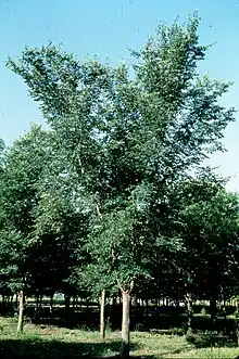 Ulmus 'Patriot' is a hybrid cultivar raised by the United States National Arboretum in 1980. Derived from a crossing of the American hybrid 'Urban' (female parent) with the Wilson's Elm (now treated as Japanese Elm U. davidiana var. japonica) cultivar 'Prospector', 'Patriot' was released to commerce, free of patent restrictions, in 1993. Tested in the US National Elm Trial coordinated by Colorado State University, 'Patriot' averaged a survival rate of 85% after 10 years.[1]
