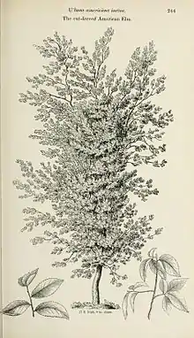 The American Elm cultivar Ulmus americana 'Incisa' was first described by Loudon in 1838 from a specimen in the Horticultural Society's Garden.[1]