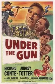 Under the Gun is a 1951 American crime film noir film directed by Ted Tetzlaff and starring Richard Conte, Audrey Totter and John McIntire.[1] It was produced and released by Universal Pictures. The film's sets were designed by the art director Edward L. Ilou.
