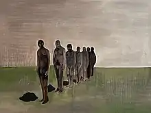 Davis became known, for his melancholic portrayals of blurred black figures against barren or shadowy landscapes - paintings that often teetered dangerously into the unreal.[6] During his life he made approximately around four hundred paintings, collages, and sculptures. His paintings are both figurative and abstract, realistic and dreamlike; they are about blackness and the history of Western painting, drawn from photographs and from life; they are energetic and mournful in their palette.[7] "He paints what he sees and thinks, expressing the dynamics of his subject with great dignity and simplicity."[8] Davis had advanced compositions that rendered three dimensional but remained flat.[7] He was influenced by European painters Marlene Dumas and Luc Tuymans, as well as American painters such as Mark Rothko and Fairfield Porter.