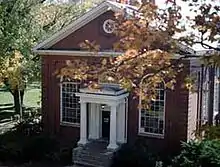 Historically, the society inhabited the top floor of Winston Hall in the Patrick Henry Room.[15] Later, it met in both Cushing Hall and McIwaine Hall; the latter burned in a fire in 1957 while the society was still occupying its third floor.[16] The society raised the funds to restore Hampden-Sydney's The Birthplace (circa 1756), which the society used as a museum and meeting place from 1961 until it outgrew the space in 1992.[3][13][17] The society currently meets in Schaeffer House.
