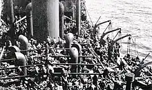 Ashantian had survived an earlier attack by U-137[18] on 26 September 1940, when, as part of Convoy OB 218, she was hit amidships on the port side by a single torpedo. It disabled the ship, killing four crew members on watch in the engine room. Both port lifeboats had been destroyed, and the 38 surviving crew members immediately abandoned ship using only the starboard 2 lifeboats, but one of them swamped, so all had to board the single remaining lifeboat. At daylight they reboarded the vessel, recovered the swamped lifeboat and sent distress signals to a circling aircraft. The commander of the Flower-class corvette HMS Gloxinia ordered the crew to leave the vessel again because a U-boat was reported in nearby Dromore Bay. On 27 September 1940, the master and crew were returned to the vessel where she was towed to Rothesay by tugs HMS Superman and HMS Seaman. She was beached in Kames Bay on 30 September 1940. In May 1941 the ship was refloated and towed to Glasgow, where she was repaired and returned to service in September 1941.