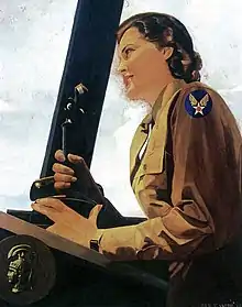 The logistical demands of this armada were met by the creation of the Air Service Command on 17 October 1941 to provide service units and maintain 250 depots in the United States; the elevation of the Materiel Division to full command status on 9 March 1942 to develop and procure aircraft, equipment, and parts; and the merger of these commands into the Air Technical Service Command on 31 August 1944.[50] In addition to carrying personnel and cargo, the Air Transport Command made deliveries of almost 270,000 aircraft worldwide while losing only 1,013 in the process.[51] The operation of the stateside depots was done largely by more than 300,000 civilian maintenance employees, many of them women, freeing a like number of Air Forces mechanics for overseas duty.[52] In all facets of the service, more than 420,000 civilian personnel were employed by the AAF.[53]