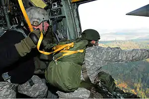 In order to obtain the coveted Jumpmaster rating, an individual must complete a series of requirements. Since 1950, only those in the ranks of Sergeant and above may perform any Jumpmaster duties.[1] The individual must be a graduate of The U.S. Army Advanced Airborne School at Fort Liberty, North Carolina,[2] The United States Army Jumpmaster School at Fort Moore, Georgia[3] or the U.S. Army Special Operations Command (USASOC) Jumpmaster School Mobile Training Teams (MTT). In order to enter these elite military schools, the individual must meet the following standards: